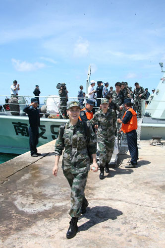 谭晶放歌西沙暖人心 与众人合影乐坏黑脸兵哥(图)(3)