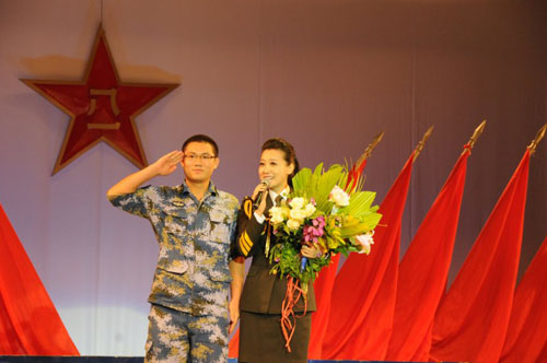 谭晶放歌西沙暖人心 与众人合影乐坏黑脸兵哥(图)(8)