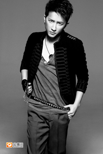 韩庚黑白大片帅气穿军装 以帽半遮面神秘魅惑(图)(2)