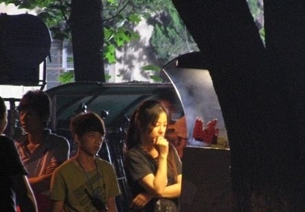 赵薇《致青春》片场眉头紧锁 韩庚现身引市民围观(8)