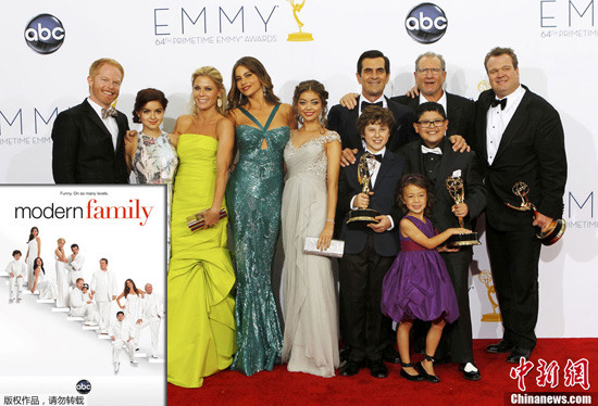 当地时间9月23日晚,美国洛杉矶,第64届美国电视艾美奖颁奖礼在洛杉矶诺基亚剧院举行。《摩登家庭》获喜剧类最佳剧集