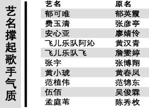 记者浏览省文化厅发布在官网的审批公告时发现,相关批文中有些会注明歌手原名,有些会直接以歌手原名公告,所以会有一些非常陌生的歌手让人摸不到头脑,而你一旦搞清楚他们的艺名,又立刻会恍然大悟。比如新加坡歌手杜成义,不少歌迷可能会联想到阿杜,但是境内郁英霞,可能就要费一番思量才能想起是郁可唯;很多人都知道小天后蔡依林的原名是蔡宜凌,但其实她在报批时用的名字是蔡依翎。小哥费玉清的胞兄张菲大家都很熟悉,但小哥真名叫什么呢?如果只看到张彦亭三个字,很少人能够和“情歌王子”联系起来。