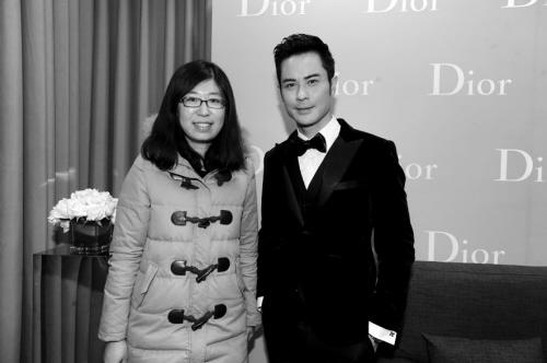 沈阳晚报记者(左)与郑嘉颖合影