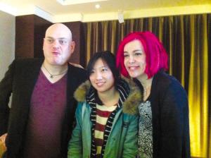 记者与导演安迪·沃卓斯基(左一)、拉娜·沃卓斯基(右一)合影