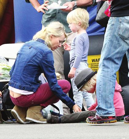 好莱坞女星娜奥米蹲地挑蔬菜 不慎露股沟(图)