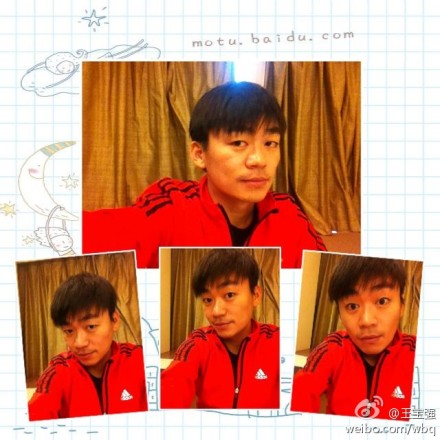 王宝强在微博写道:“昨晚拍了一个通宵,刚睡起来,自恋一下买(卖)个萌,今晚继续冰封侠”。照片中,王宝强一身红衣,并在镜头前或努力瞪大眼,或摆出严肃表情,可爱搞怪。