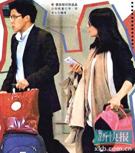 脚踏平底鞋的她与老公各自推着一个行李箱和一袋手提包,只见她另一只手拿着外套,又要急步追上老公急促的步伐,显得有点狼狈。当行至扶手电梯时,郭晶晶吃力地提起行李箱,霍启刚却没有从旁帮忙,任由太太“自由发挥”,似乎不够细心。其间两人又各自聊电话,还一个走前一个走后,脸上没有任何表情,似乎结婚半年,已颇有老夫老妻的默契。