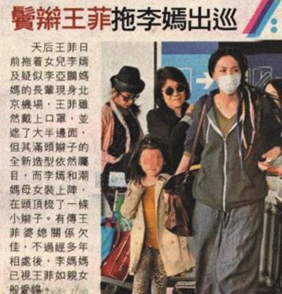 王菲携女儿返京扎满头小辫 疑婆婆同行(图)