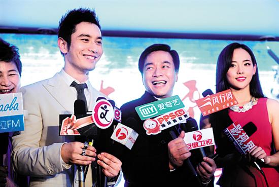 →唐季礼(中)与黄晓明等接受媒体采访摄/余姝