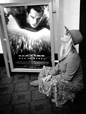 “佩妮”与《超人》海报合影。