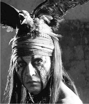 德普在《独行侠》中扮演的通托,扮相都像足他在《加勒比海盗》中演的杰克船长。