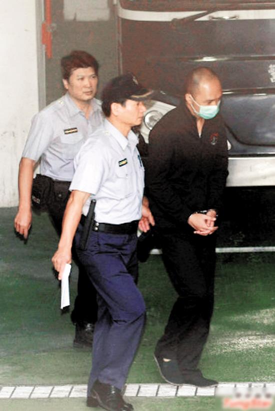 身穿黑衣的李宗瑞(右)精神萎靡。