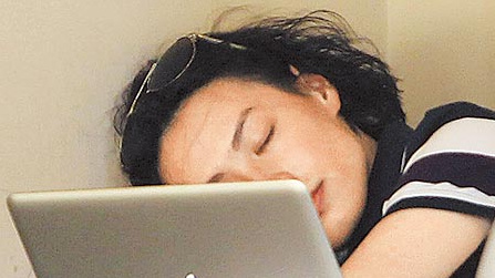 梁洛施咖啡店素颜打瞌睡 褪尽豪门光环(组图)