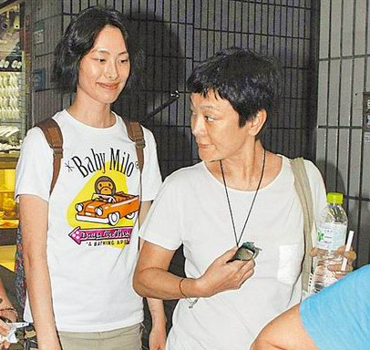 梁洛施(左)和张艾嘉一起回住处,听到记者追问恋情,她笑得尴尬。图片来源:台湾“苹果日报”