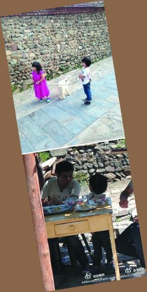 林志颖儿子和王岳伦女儿在农村录制节目。