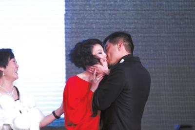 嫣然慈善晚宴,李亚鹏台上热吻王菲,王菲开玩笑地猛擦嘴,夫妻俩打闹旁若无人。