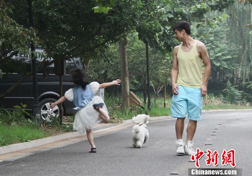 中新网9月24日电 湖南卫视新节目《爸爸去哪儿》继明星郭涛、林志颖和张亮确定加盟后,又新增一名超级好爸爸田亮。日前曝光的一组照片中,一身休闲打扮的田亮和小公主打扮的cindy牵手在小区中遛狗,5岁cindy长相酷似叶一茜,牛仔蓬蓬裙让她的甜美气质一览无遗,不管是散步还是奔跑,好爸爸田亮全程眼光都黏在宝贝女儿身上,疼爱之情溢于言表。
