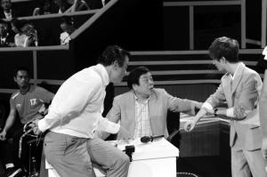 周立波的“毒舌”和对于舞台的掌控是出了名的,原本只有他一人担任“梦想大使”,现在多了两位,三人会不会在舞台上“互呛”?蒋敏昊表示首期录制中的确有“互呛”,但“呛”得很好看,“周立波非常尊重赵老师,赵老师第一天到录制地,周立波就去拜访了他,而在舞台上,他也郭敬明亲切称为‘小四兄弟’,在节目录制期间,郭敬明还经常去周立波的车里和他‘密聊’。”值得一提的是,今晚的节目中,一群来自大连海事学院的90后肌肉猛男一上台就拿郭敬明的身高开起了玩笑,“听说郭导今天来梦想秀现场了,我怎么没看到他呢?”小四毫不客气地反驳:“幽默是让人开心的,而不是一上来就攻击别人。”周立波也力挺小四:“你们是很阳光,但是说任何话,哪怕是善意,也要考虑别人的感受。”