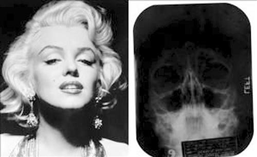 据悉,这六张X光片上记录的日期是1962年6月7日,也就是梦露自杀前的两个月。这些X光片拍摄了梦露的面颅骨、左侧鼻骨和右侧鼻骨,以及上腭等部位。事实上,对于梦露是否作过整形手术,一直是好莱坞颇具争议的话题。贝弗利山的整形专家、古丁医生的搭档诺曼·里夫曾在回忆录中透露,梦露不但在1950年做过下巴,还做过鼻尖的微整形。尽管根据医生的记录,可以肯定的是梦露的鼻子并没有因为手术受到伤害,但是最近有放射科学者从这些被曝光的X光片上发现,梦露的鼻骨有很轻微的断裂。