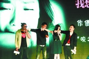 影片的其中一张海报是倪妮痛咬冯绍峰胳膊的一个特写。现场冯绍峰大方地邀请导演李蔚然和编剧作业本上台一同“咬手”。等到死拽着两人上台后,作业本却被告知需要去咬“冯绍峰”的手,倒是倪妮,被要求去咬导演的手。结果其余几人都是装装样子,只有她,还真的咬了上去,引得导演本人都大呼,“真是开了斋了。”