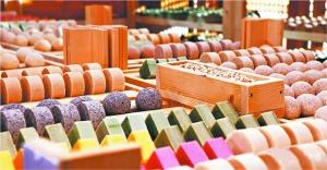 店内陈设各式香皂,并设有洗手台方便客人体验。
