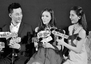 ▲林峰(左)和吴千语(右)昨天同场接受采访,但就是不肯两人一起给媒体拍合照,中间还要找个女星当“电灯泡”,但林峰和吴千语两人还是有不少眼神交流的。信息时报记者 朱元斌 摄