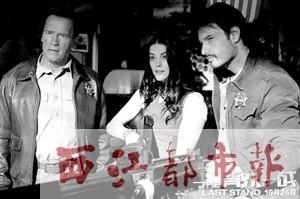 十年前,施瓦辛格在《终结者3》中留下一句“I Will be Back”便暂时告别了银幕,只是偶尔做些客串表演。十年后,他兑现承诺,带着他的扛鼎力作《背水一战》回到阔别已久的大银幕。《背水一战》中,施瓦辛格经典持枪姿势与墨镜无一不击中怀旧观众的心脏。施瓦辛格在影片中展现了和过去完全不同的身手,突破自我,首度奉献了结合了跆拳道、空手道等东方作战技能的近身肉搏演出,雄风丝毫不减当年。相信州长大人这一次“最能打”的回归之作一定不会令观众失望。