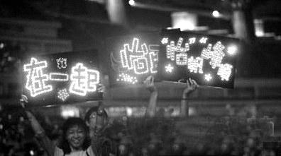 演唱会现场,汪峰的粉丝举牌支持“峰子恋”。