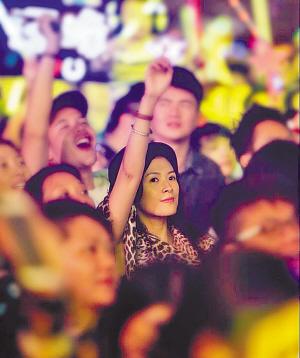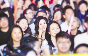 章子怡跟随歌迷尽情投入到演唱会中。