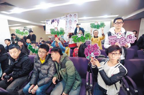“等到王珞丹走到柱子这里,我们就喊口号,看我手势啊,数到2就开始,大声点!”从大连、海城、鞍山、丹东、锦州等多个城市赶来的“丹磁”(王珞丹粉丝昵称)早早就赶到本报的见面会现场做准备,他们中最小的今年刚刚上高中一年级,大多数是二十岁左右的少男少女。一位“丹磁”告诉记者,他们听说王珞丹脚受伤了,特意给偶像带来了拖鞋、猪蹄、锦州烤鸡,特别贴心。“准备好,来啦来啦,唉……不是呀。”原来是本报记者从门口走进来,“丹磁”大呼白浪费了一次感情。