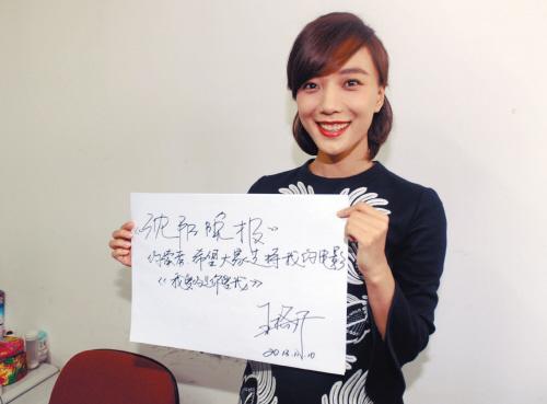 名家、明星做客沈阳晚报、沈阳网,畅聊演艺人生,并与读者互动的“沈晚说亮话”栏目,昨日迎来首位重磅嘉宾——著名影星王珞丹。为电影《我爱的是你爱我》来沈宣传的王珞丹,独家做客沈阳晚报,与本报读者亲密互动,现场怎一个“嗨”字了得。等待多时的“丹磁”们(王珞丹粉丝昵称)按捺不住兴奋的心情,纷纷向偶像王珞丹“真情告白”!让人感动的是,粉丝第一个问题就关心王珞丹的脚伤恢复情况,更纷纷表示想让偶像留在沈阳养伤。而他们使出的杀手锏竟然是:“我请你吃沟帮子熏鸡!”“我天天给你烀猪蹄!”……在辽宁美食的诱惑下,以及“丹磁”连续四次的挽留下,王珞丹心动了:“我拍完戏就回来!”不过,当现场有男粉丝向她示爱时,王珞丹可就没那么容易被打动了,她幽默回绝道:“你属鸡?和我爸同岁!”现场粉丝众多,如何能求签名?一位中年男粉丝亮出绝招,现场演绎《红娘子》中王珞丹的台词,后者哈哈大笑:“真难得,一字不差,这个名我必须签!”