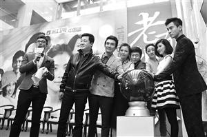 ▲赵宝刚(左二)携《老有所依》主要演员在杭州参加新闻发布会。 (剧方供图)