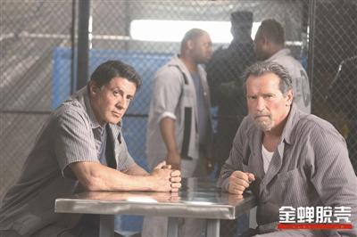 史泰龙扮演的雷·布雷斯林以越狱专家的身份被关进秘密监狱,施瓦辛格扮演的罗特梅耶则因做过劫富济贫的传奇大亨的保镖而锒铛入狱。史泰龙与施瓦辛格是动作片黄金时代的两大标杆人物,不过比起他们在各自代表作《第一滴血》与《终结者》中的角色,《金蝉脱壳》让两者同时结束了以武力对抗主流社会的历史,转而为他们各自扮演的英雄赋予了更多的智慧色彩。