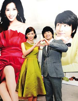 11月10日,跨国浪漫爱情电影《甜心巧克力》发布会在武汉举行。图为主演林志玲(左)与福地祐介在发布会上合影。