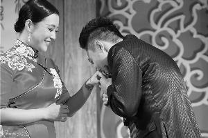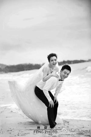 ▲郝蕾夫妇在婚宴上公开婚纱照。