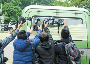 10点20分,灵车穿过香港海底隧道抵达港岛的香港殡仪馆,此时已经有不少香港媒体在现场守候。12点过,前来采访的香港记者激增到四五十人,几乎囊括了全港所有的重要媒体,因为人数太多,香港殡仪馆又处在闹市区,所以有警察在现场维持交通持续,殡仪馆工作人员也在人行道安放铁栅栏,隔离出临时采访区。