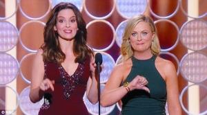 蒂娜·菲和艾米·波勒去年联手搞笑让收视率创近6年新高,今年继续当主持人的两个女谐星则继续玩笑不断,除了开涮台下的明星,也勇敢自嘲。
