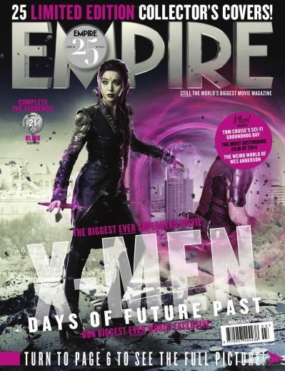 从27日晚开始,《帝国》杂志每隔一小时放出一款《X战警:逆转未来》人物的封面海报,合计25款——第21款的宣传封面就是中国女星范冰冰饰演的变种人“闪烁”(Blink)闪亮登场!Blink本名克拉丽斯·彭伯顿,是一个可以瞬间移动并可以使外物瞬间移动的角色。叶深