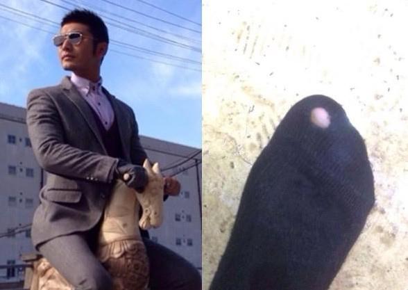 内地当红小生黄晓明身家过亿,但他却在网上发袜子破洞照,抗议“全年无休”!他写道:“自从脚伤之后已经一天没休息连续工作一年多,该歇歇了!否则都对不起自己,今年少接工作,多陪爸妈出去玩一玩!看看......袜子都抗议了!”