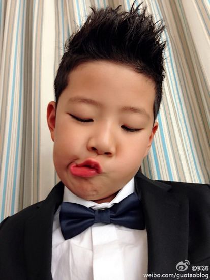 照片中,一身帅气礼服的石头挤眉弄眼,撅嘴卖萌很可爱,但老爸郭涛却“不解风情”,附文说道:“石头儿,眼瞅着寒假即将结束,明天(10日)又要开学了,你寒假作业做完了吗?”