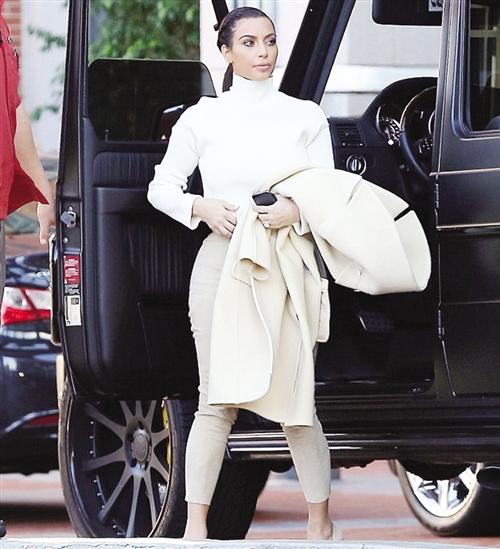 34岁的美国名媛金·卡戴珊一向都以土豪形象示人。日前,她被拍到穿着白色高领毛衣米色裤外出,臀部爆肥,身材严重变形,已全无往昔美好形象,但言谈举止间土豪气仍然十足。