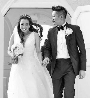 吴辰君(左)前年和廖怀南举行婚礼。 (资料图片)