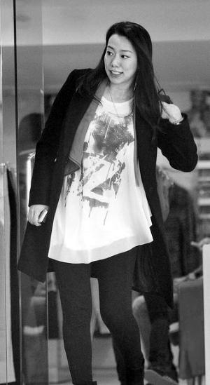 她选购了多件孕妇装,由于孕妇不适合提重物,她要店家将战利品送到家。但她小孩尚未出生,要买什么婴儿用品似乎也没有头绪,看了几款小孩衣服、背包,之后就搭出租车去和友人喝下午茶了。