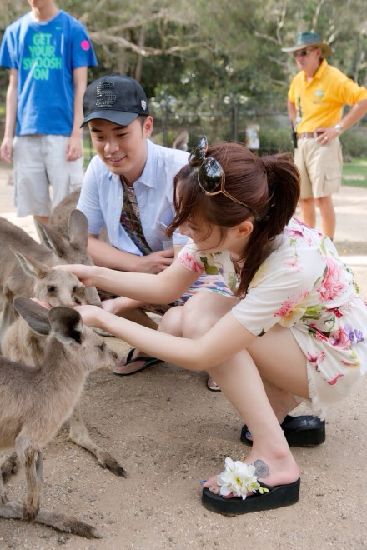 “曾小贤”与娇妻游澳大利亚 与袋鼠合照卖萌(图)