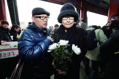 ▲上午,王小帅和梁静来到追悼会现场,表情凝重。