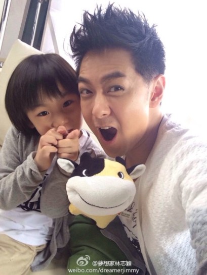 中新网2月28日电 27日,林志颖在微博上晒出和儿子kimi的三张搞怪合影,照片中,父子两做出夸张表情,林志颖手拿人偶布娃娃小牛,并透露这是儿子的新宠。