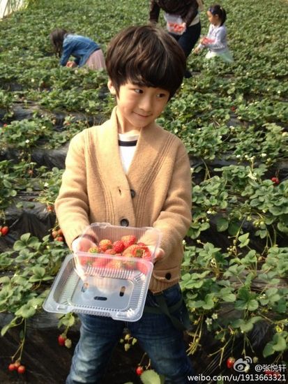 张亮儿子自曝周末行程 户外摘草莓露小酒窝(组图)