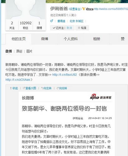 马伊琍父亲微博截图