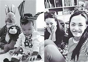 姚晨为儿子扮靓戴头箍 网友:小土豆发芽了(图)