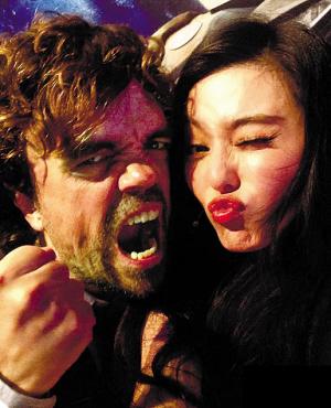 范冰冰与《X战警》男主角贴脸合照 表情搞怪(图)